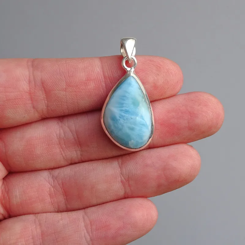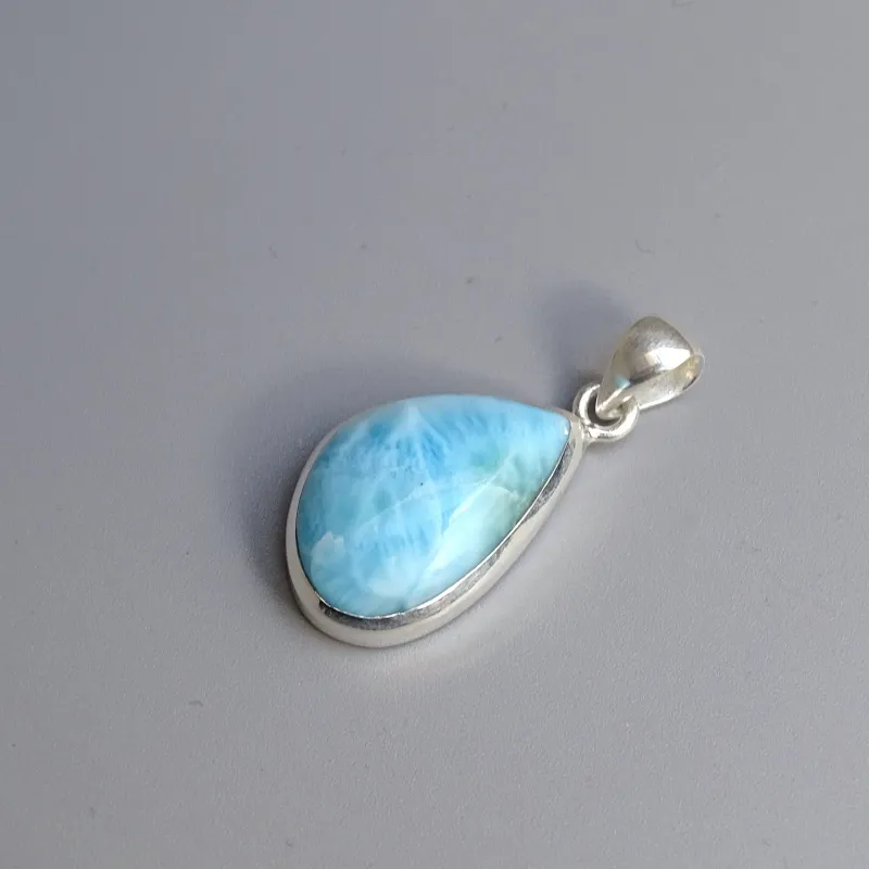 Larimar přívěsek v nejvyšší kvalitě AAA+, krásná kresba i barva kamene. Doporučujeme tento luxusní šperk i jako dárek. Larimar má jedinečný vzor s bílými a modrými odstíny, připomínající vlny a oceán, což z něj činí esteticky velmi přitažlivý kámen. Každý kus larimaru je jedinečný, což z něj dělá skvělý a osobní dárek. Larimar je minerál, který zaručeně upoutá pozornost a zaujme hned na první pohled.